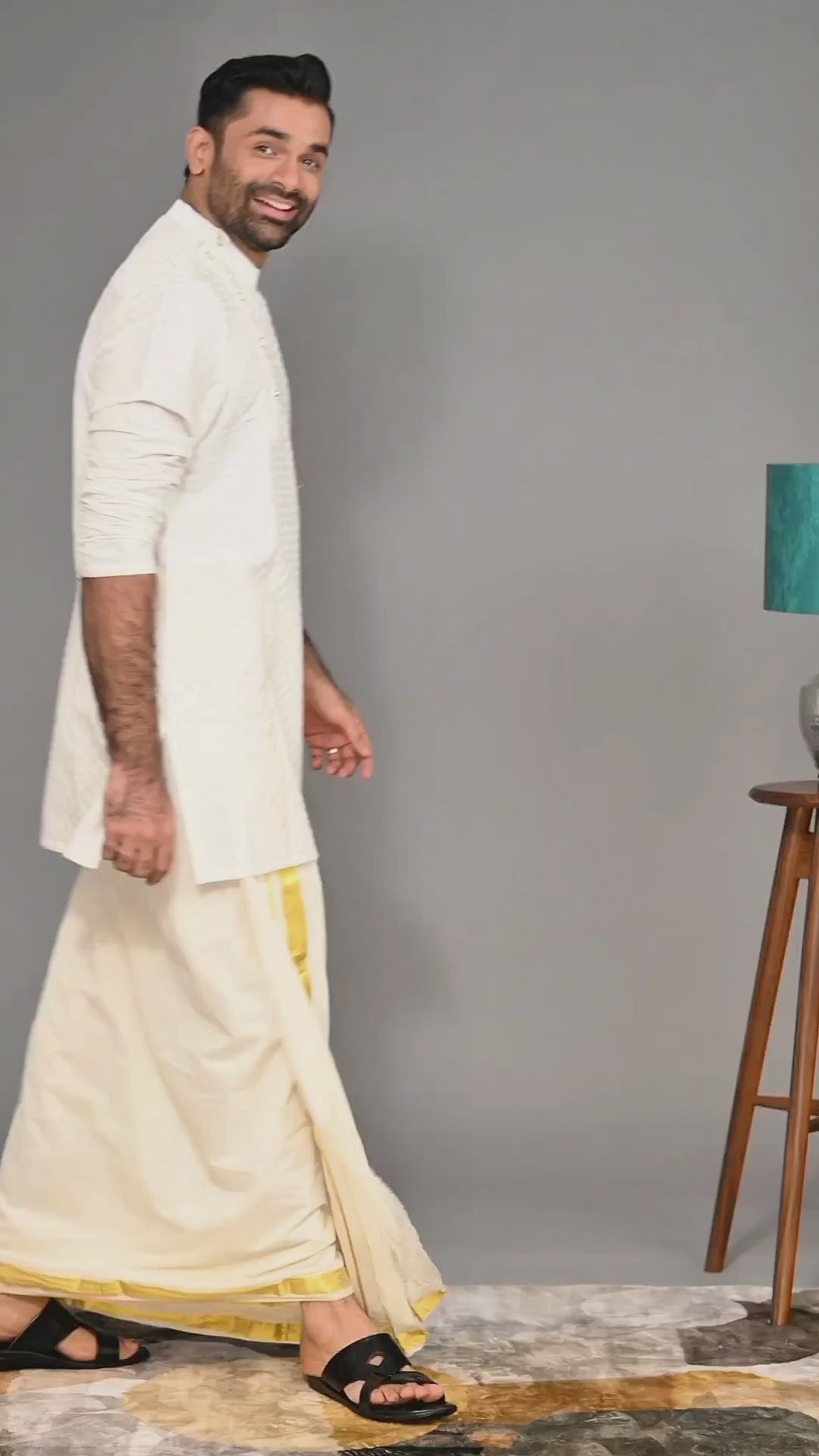 Classic Ivory Silk Kurta with side open closure opening with surface fabric embroidery