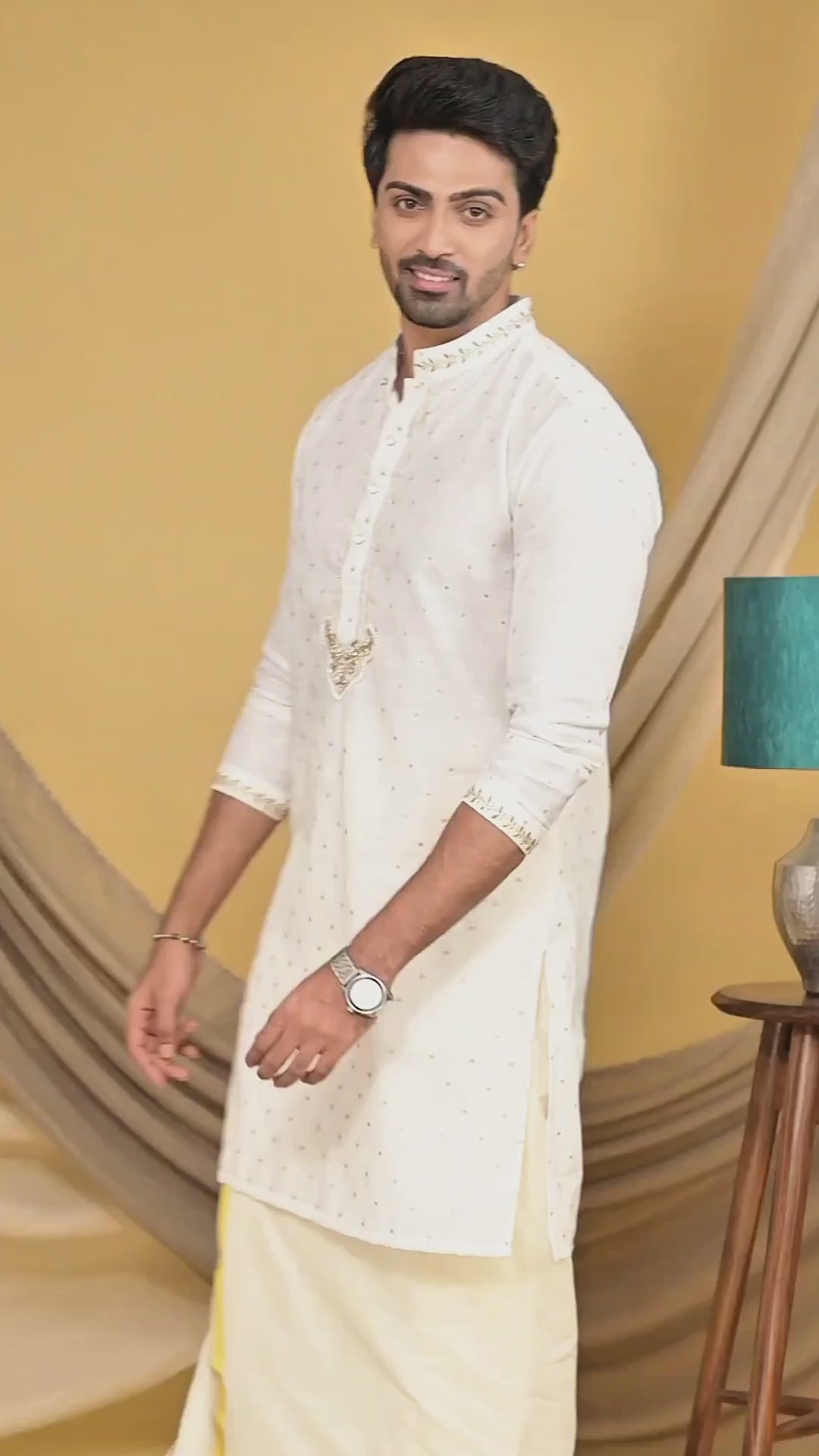 Ivory Shade Silk Kurta with floral buta hand work detailing