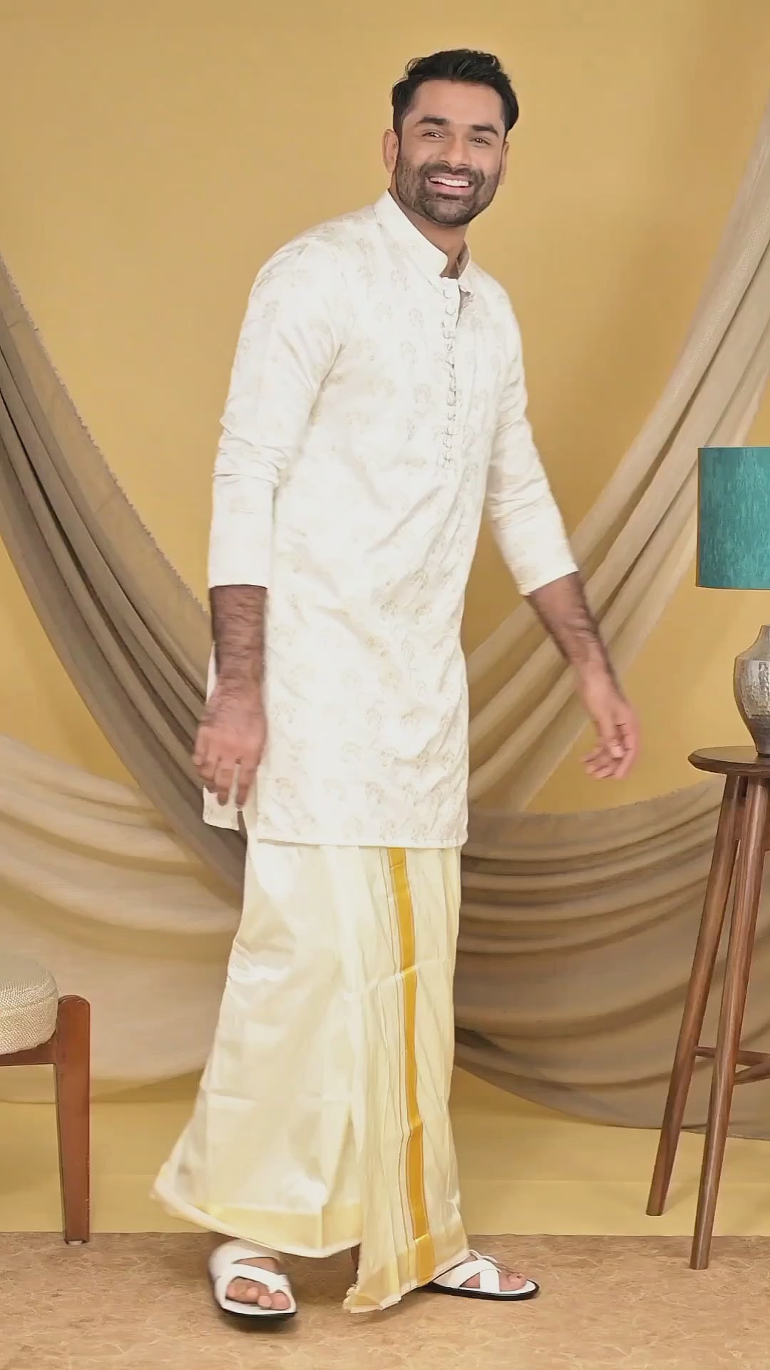 Ivory Silk Jacquard Kurta with Surface Embroidery detailing (Kurta Only)