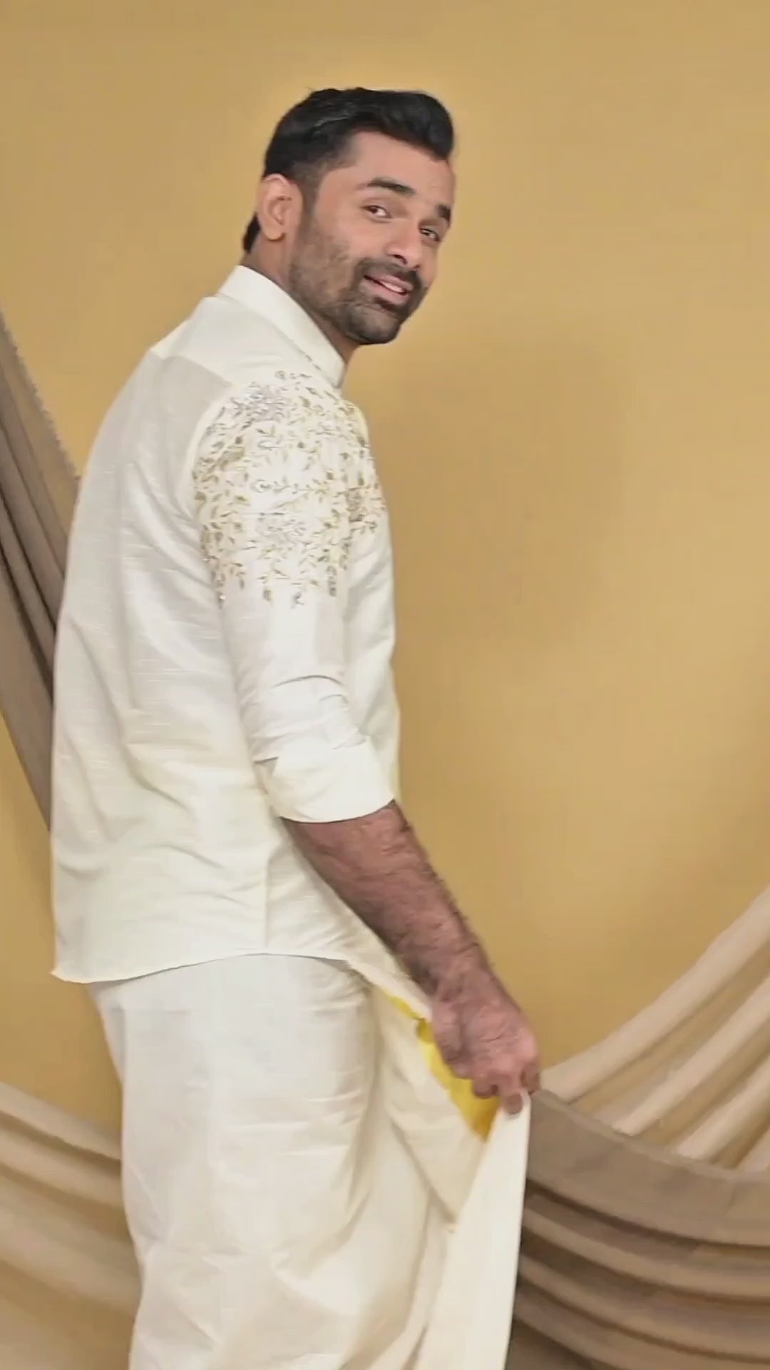 Ivory Silk Traditional Shirt with Hand Embroidery detailing on Single SIde (Shirt Only)