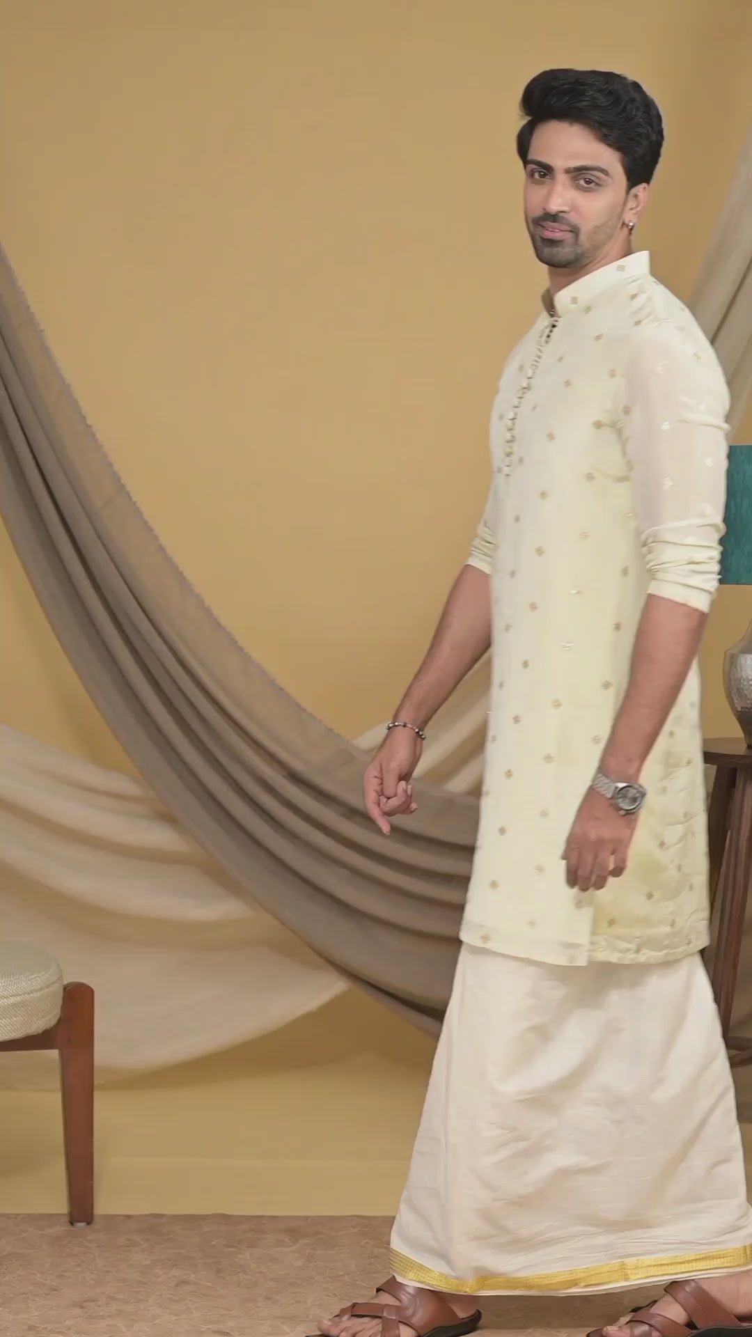 Light Golden Tissue Silk Kurta with Buta detailing (Kurta Only)