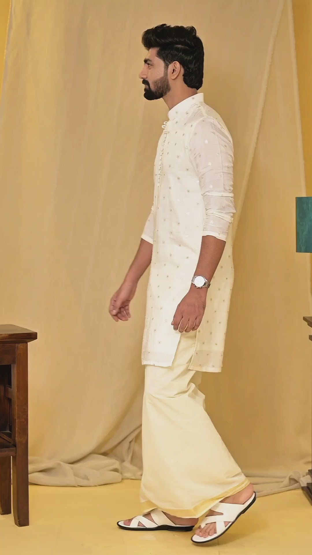 Off- White Silk Kurta with Golden Thread & Sequence Detailing on the body (Kurta Only)