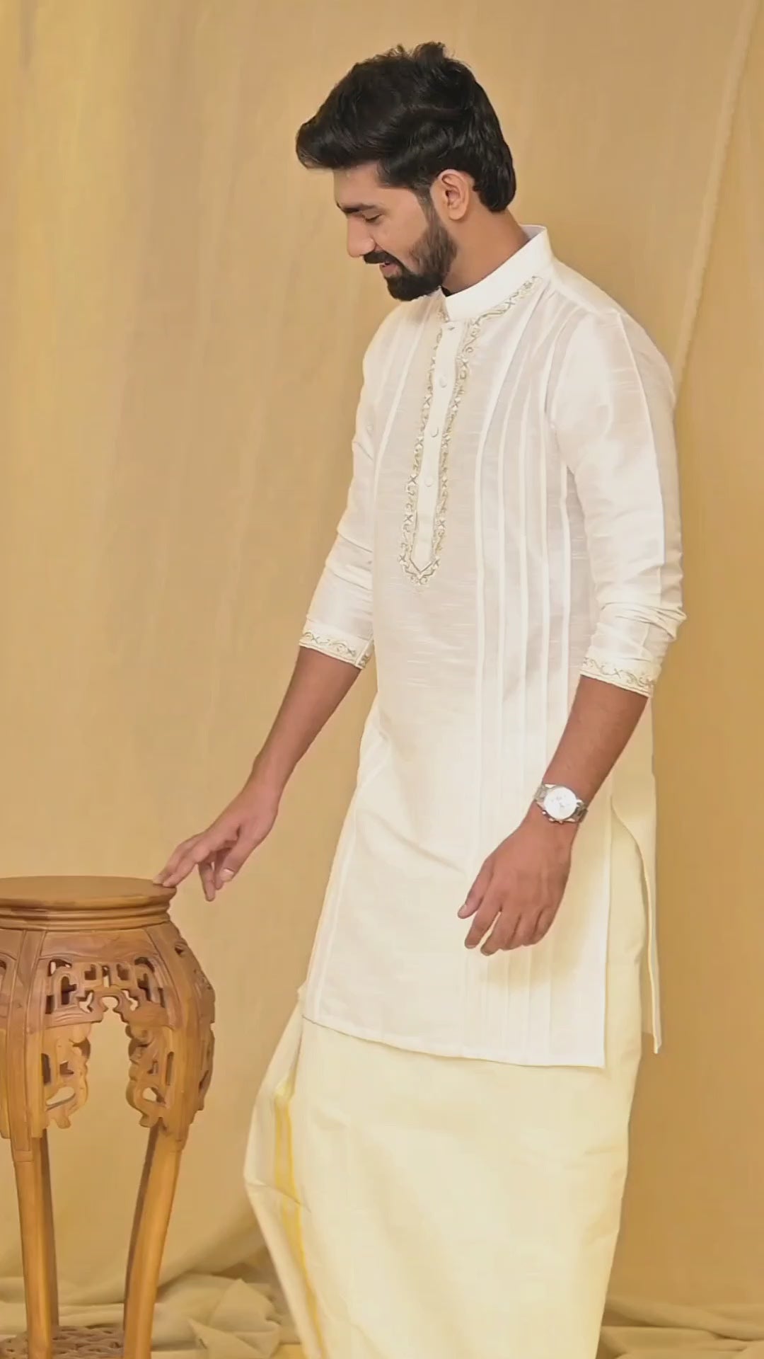 Off- White Silk Kurta with Hand Embroidery detailing