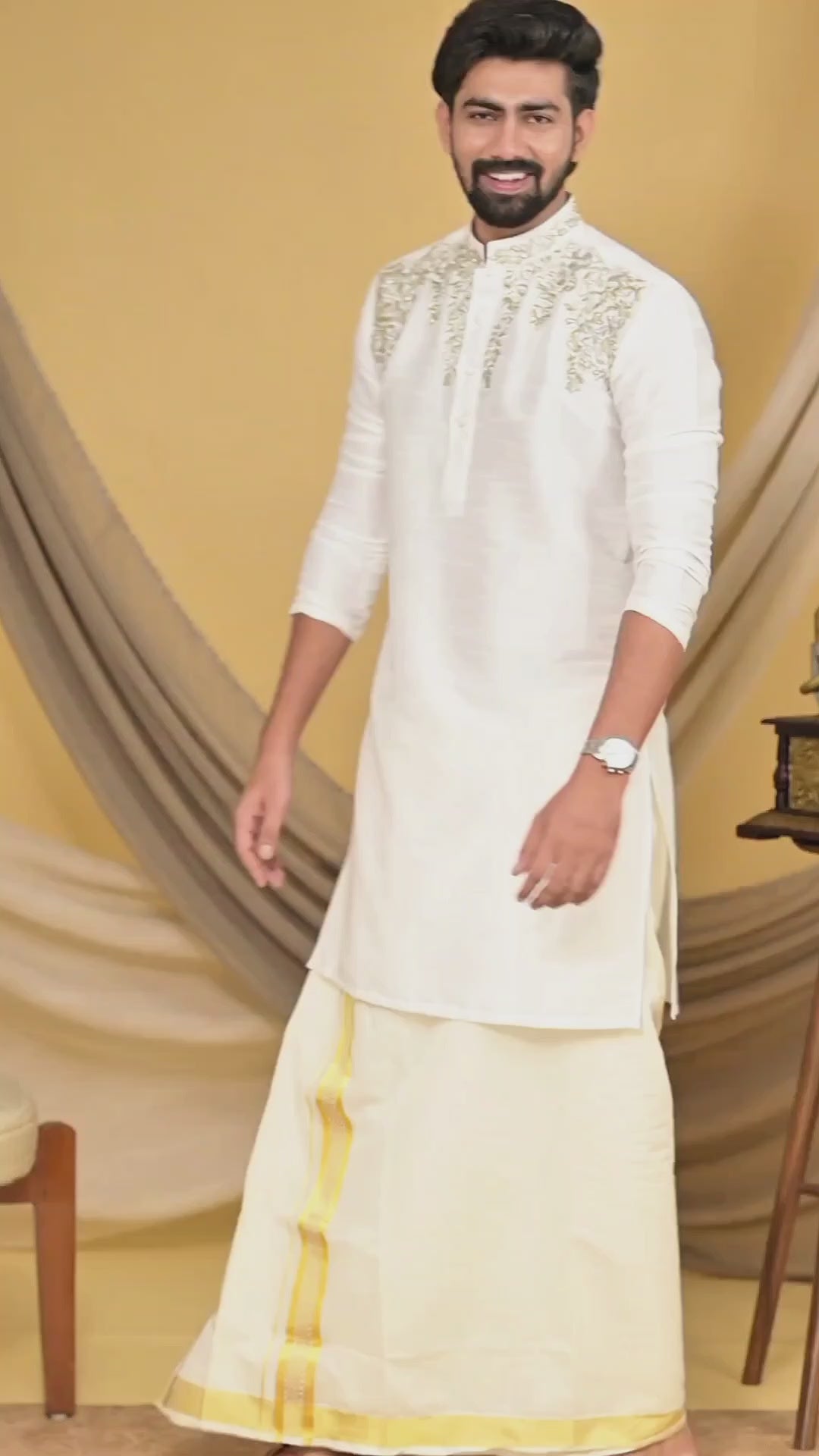 Off- White Silk Kurta with Hand Embroidery detailing on shoulder line & neck (Kurta Only)
