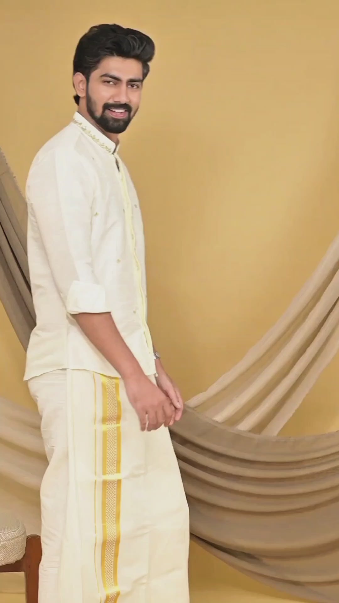 Off White Traditional Shirt with Golden Handwork detailing