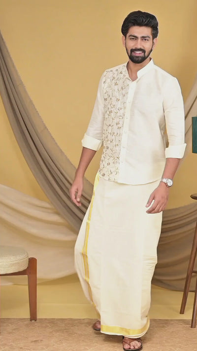 Off White Traditional Shirt with Golden Handwork detailing on Sinlge Side Bodice (Shirt Only)