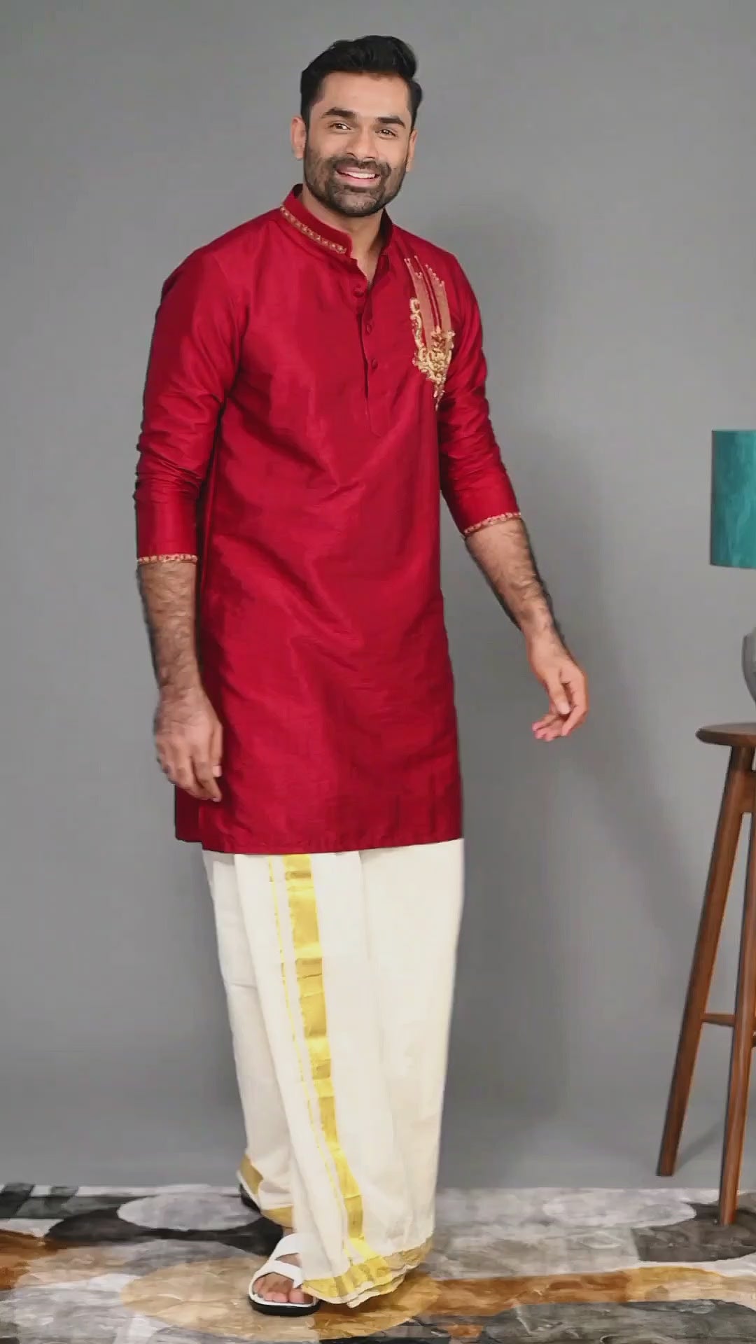 Saffron Red Silk Kurta with Hand Embroidery Motif detailing on Chest - Zari Detailing on Neck & Sleeve Edge (Kurta Only)