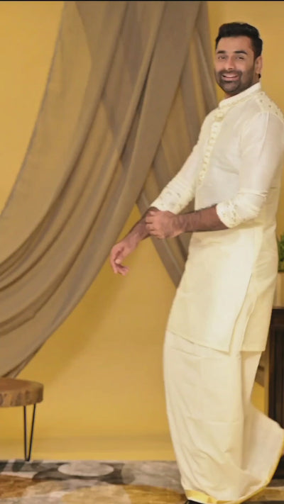 Self Design Silk Kurta with Light Hand Embroidery detailing